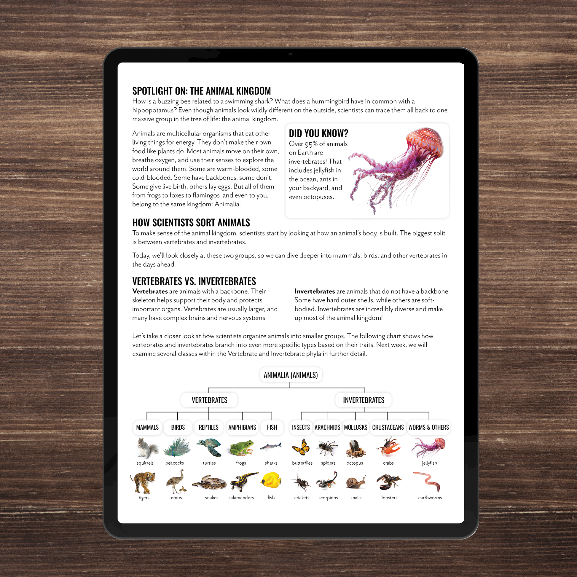 Optional Spotlight pages introduce animal classification and world biomes